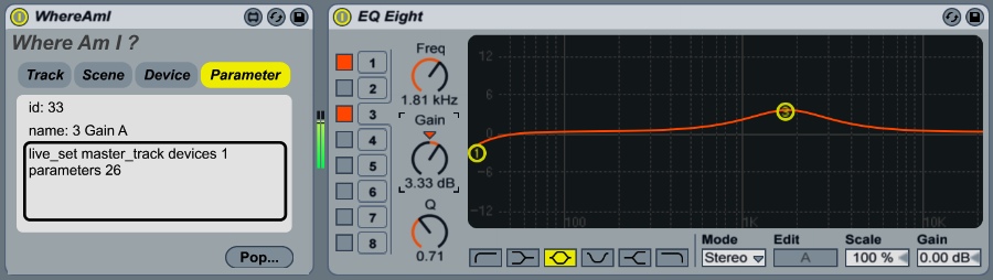 Description: Where Am I is a free Max For Live utility device that displays Live API information for the currently selected element of the Ableton Live interface.