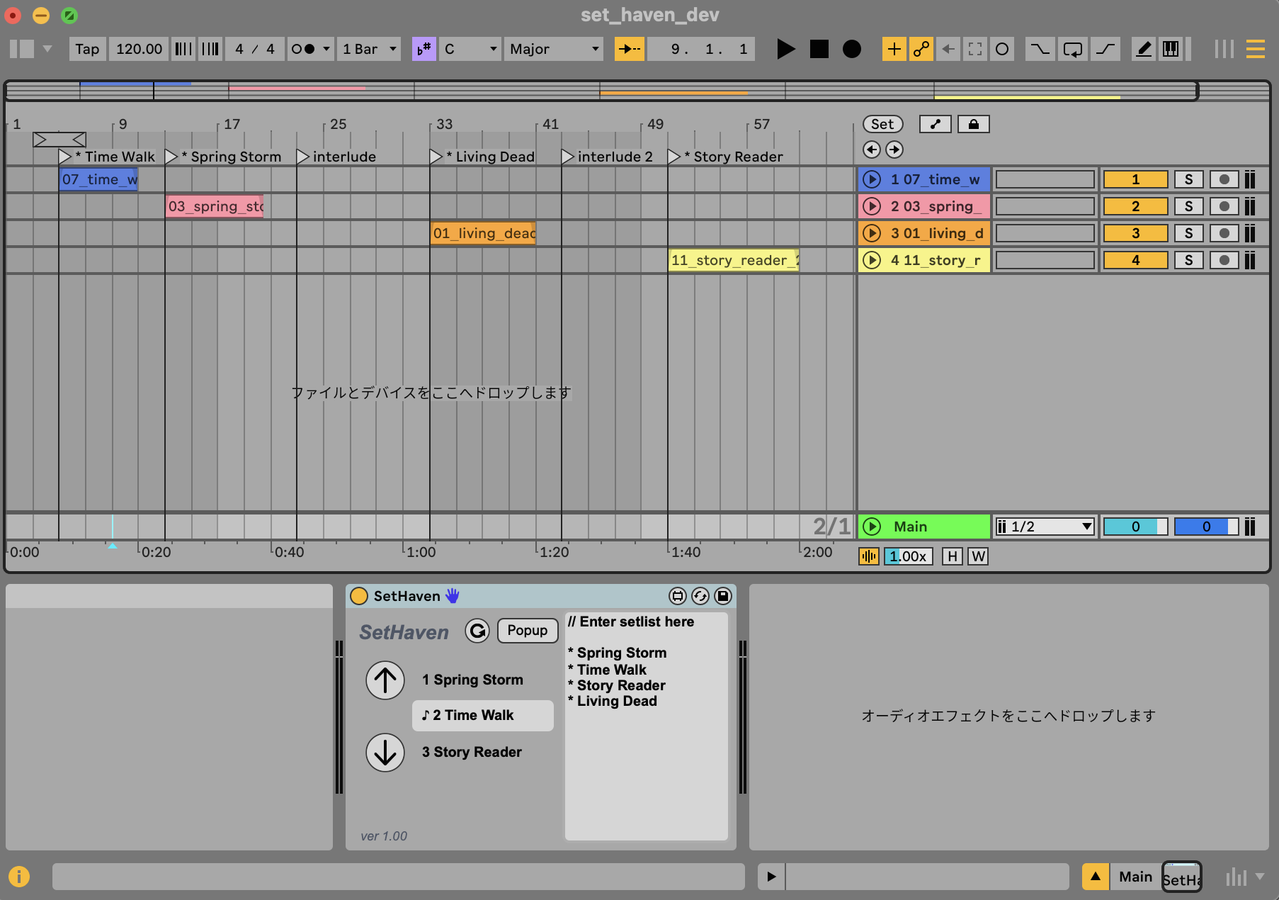| Description: | SetHaven manages setlist and provides easy way to jump between locators. - The locator starting with an asterisk is the target of the move - The set list (order of songs) should be entered in the text box. This must match the locator name. Lines that do not match will be ignored as comments. - The current and next songs are calculated from the currently playing point. - Jump to the previous/next locator by pressing the button. |