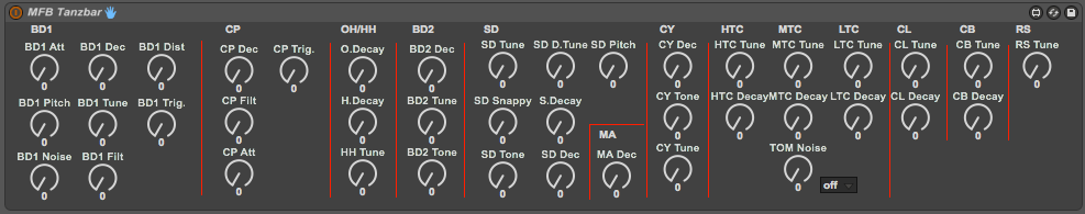 - it needs a "Send All Current Parameters" button to send all its current parameters to the Tanzbar. Then we can use this device as a preset or template for any given song, we simply set the parameters we want and save them and then each time we play that song we press this button first to set the tanzbar to the sound we want.
