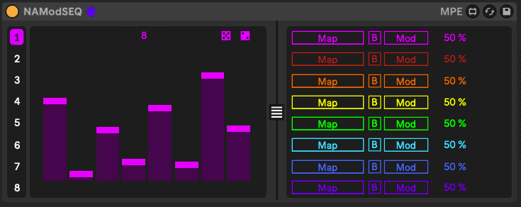 | Description: | 1.6 Added Smoothing to the modulation 1.5 Added Random all for Steps, Values and Scramble. Added ability to Map all in order and clear all Mappings. Clicking MAP at the top lets you Map parameters one after another in order, clicking the x at the top allows you to clear all mappings at once. I rolled my own version of the code, I have no clue how he did it, but the concept is totally inspired by dnksaus00 shaper mod. Check it out it's pretty rad. 1.4 Added an audio version of the device where you can select the midi in source. 1.3 Added 8 color coded Multisliders, one for each Map Button 1.2 Added Randomization 1.1 Moved the Mapping to an expandable page. NAModSEQ is a Parameter Sequencer with up to 32 steps and 8 Remote/Mod destinations via Mapping hacked from the stock LFO. The Sequencer is advanced via midi notes from the playing clip and has no internal clock. Try setting the Steps to an odd number based on how many note are in the clip. |