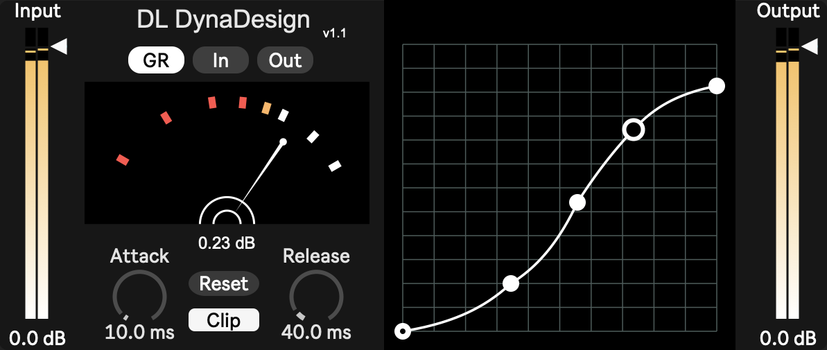| Description: | This is a free(ly?does not mean free of charge.) audio dynamics design M4L plugin, very simple yet very useful. With only 5 points and a curve, you can use them to design your dynamic curve to scale the input and output of the audio signal for dynamic control. It can be a compressor, limiter, expander, or gate, or a combination of them, depending on how you draw your dynamic curve. Need Ableton Live Suite 10 and above to use it. 这是一个自由的音频动态设计M4L插件,非常简单但很有用。 只有5个点和一条曲线,您可以使用它们来设计你的动态曲线以塑型音频信号的输入和输出的关系来达到动态控制。 它可以是一个压缩器,门限器,扩展器或者限制器,也可以是它们的合体,这取决于您怎么绘画您的动态曲线。 您需要Ableton Live Suite 10或以上版本才能使用。 |