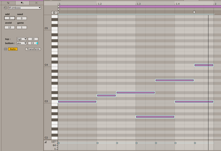 | Description: | Adds new notes to an existing musical context according to a set of rules. Rules involve probing existing notes and the use of deterministic randomness, scales, distance, boundaries. latest updates : 2025 03 28 > many fixes, missing absolute modes; the number of notes now works as a target value; cleaned the way notes are parsed 2025 03 30 > fixed bugs due to the use of global sends 2025 04 06 > other bugs in the hardcoded list of booleans |