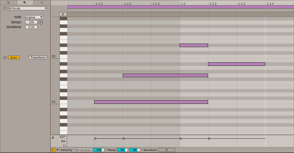 | Description: | Converts MIDI pitches into audio-rate retriggers. Warning: can be CPU-intensive for obvious reasons, may temporarily freeze Ableton. Video demo : https://www.youtube.com/watch?v=jgJjsrR1cec |