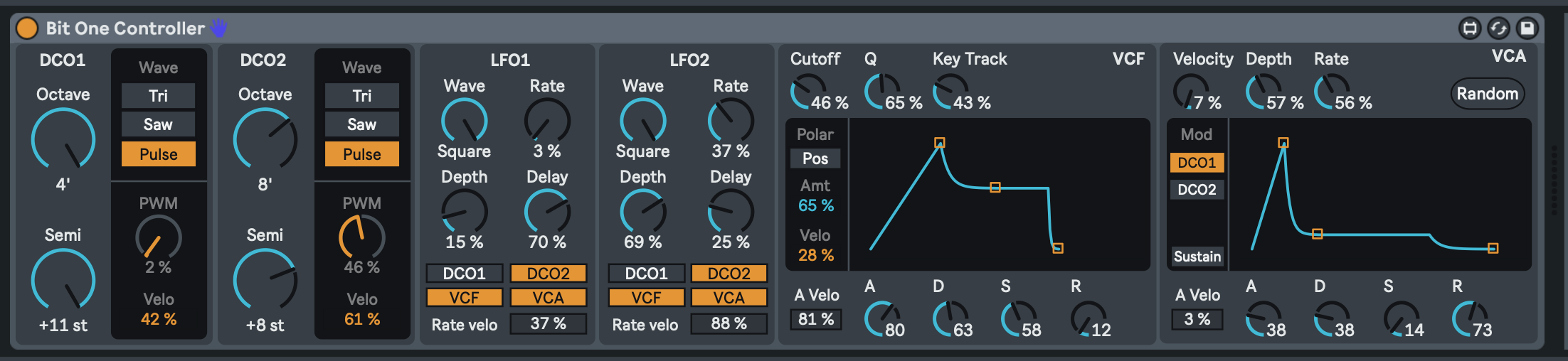| Description: | A controller for the Crumar Bit One synthesizer using CC. This assumes you have at least the Tauntek firmware installed, and preferably the HKA Audio MIDI mod as well. Has a random patch button! This will randomise all parameters. Fun for the whole family! |