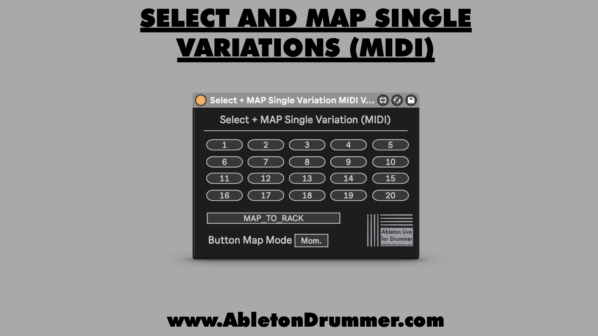 | Description: | SELECT AND MAP SINGLE VARIATIONS (MIDI) - lets you trigger specific macro variations Check out TobiBot for Questions on Ableton Live & Max for Live: https://blog.abletondrummer.com/ableton-support-chatbot/ Check out more Max for Live devices here: https://maxforlivedevices.com/ All Devices - https://maxforlivedevices.com/category/all-devices/ Collections - https://maxforlivedevices.com/category/collections/ Control - https://maxforlivedevices.com/category/control/ Free - https://maxforlivedevices.com/category/free-max-for-live/ Hardware - https://maxforlivedevices.com/category/hardware-control/ How To and FAQ - https://maxforlivedevices.com/category/faq MIDI Tools - https://maxforlivedevices.com/category/midi-tools/ Max for Live not only for drummers: https://blog.abletondrummer.com/free-max-for-live-devices/ How to install Max for Live devices: https://blog.abletondrummer.com/how-to-install-max-for-live-devices-in-your-user-library/ How to get Max for Live devices: https://maxforlivedevices.com/how-to-get-max-for-live-devices/ Frequently Asked Question and How To Max for Live: https://maxforlivedevices.com/category/faq/ |