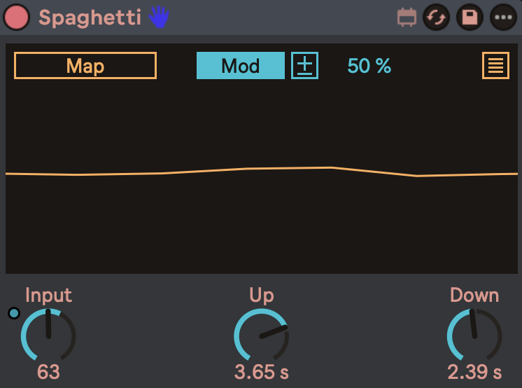 | Description: | Spaghetti is a bare-bones slew limiter based on rampsmooth~. Simply map a modulator to the input dial, and map Spaghetti to your desired destination(s). Up smooths upward movement, down smooths downward movement. If you feed the input a bipolar signal you will need to set the control to 63 (noon) initially to get an accurate recreation at the output, incoming information may be clipped off otherwise. Maximum up/down smoothing time is 5 seconds, counted in milliseconds (i.e. 1 second = 1000 milliseconds). Some basic usage ideas: - Smooth out modulation with greater flexibility than Live's built in modulator smoothing controls (these do their best to maintain timing, here the goal is to drastically increase the time it takes for a control to move between its initial and fully modulated states). - Insert between macros and their various destinations to produce lagging changes across parameters. - Smooth up but not down, down but not up, etc. This allows you to produce smooth ramps with discontinuous drops or vice versa. This patch makes use of Zack Steinkamp's zs.mapper abstraction and is therefore licensed under the GPLv3: https://github.com/zsteinkamp/m4l-zs.mapper. Thank you to Zack! |