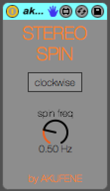 | Description: | Spin the sound around listener's head. It draws a circle/oval, panning the sound source in front, right, back, left side.. It's a binaural tool..use it w/ headphones for max results, without it for panning fx.. |