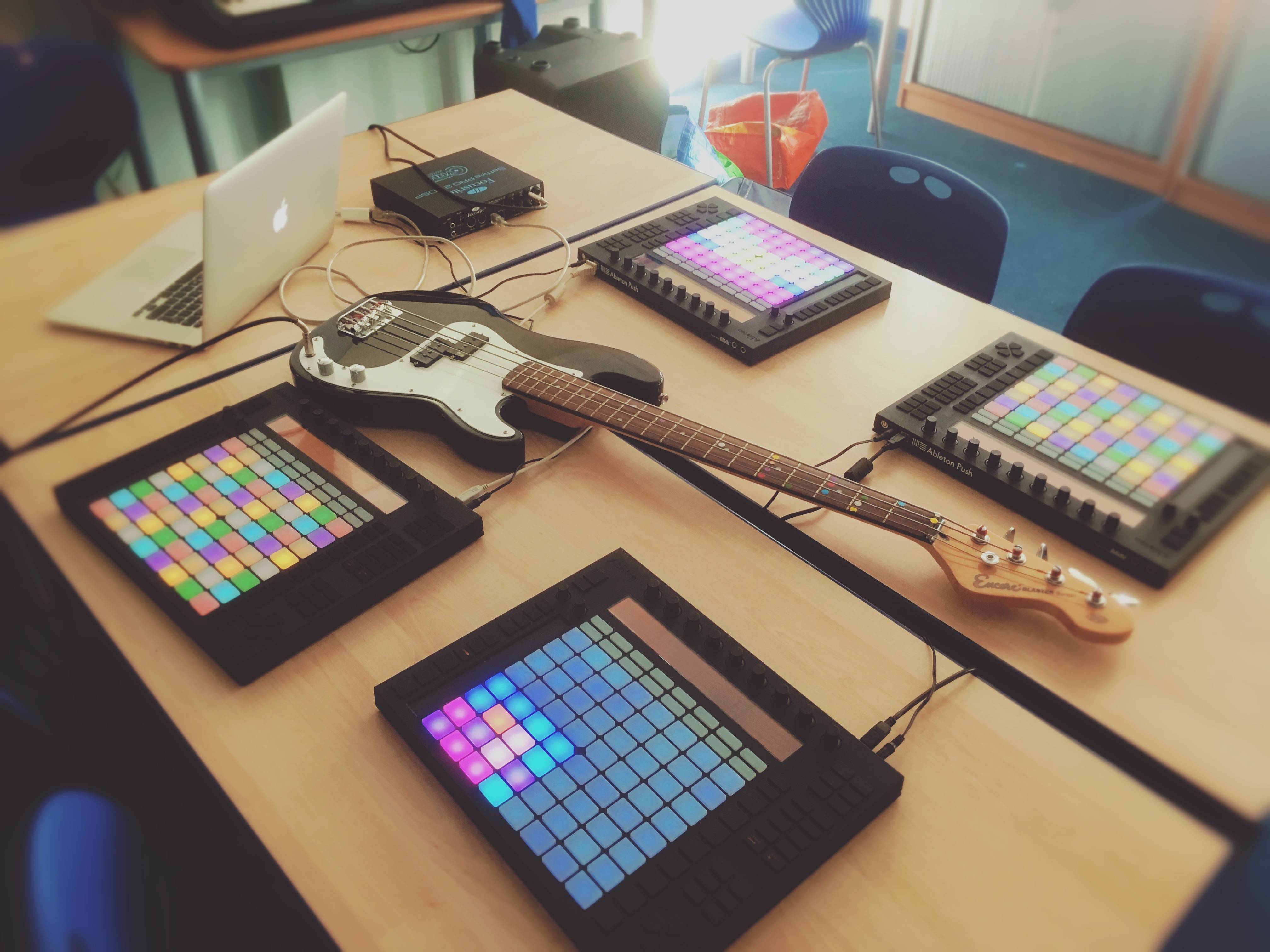 | Description: | I have had a bug reported and should be clearer that this device requires tracks to be numbered (track names should start with #) in order to function properly. Push Colour Notes v1.6.1 1.6.1 fixed a bug that stopped target track list from populating on load. Swaps pad colours on Push one based on note or drum pad name and SUPPORTS UP TO SIX PUSH1 UNITS PER LIVE SET. This is a pretty major update aimed at the Ableton Push initiative educators but hopefully useful to a few more max users out there too. v1.6 MULTI-PUSH SUPPORT up to 6 Push units controlling up to 6 separate instrument and drum tracks!!! Auto coloured Drum Racks supported!!! Drop this Max for Live MIDI device in it's own track in your live set, (your first available Push unit will be automatically selected) use the drop down menu to select the track you want to control and you are done. Do this up to 6 times. Works best when used with Push Locker and Push Class Control Devices also by Fingers Push Buttons. I am attempting to improve this device for class and performance settings all the time so please report any bugs to fingerspushbuttons@gmail.com and check back for updates soon. |