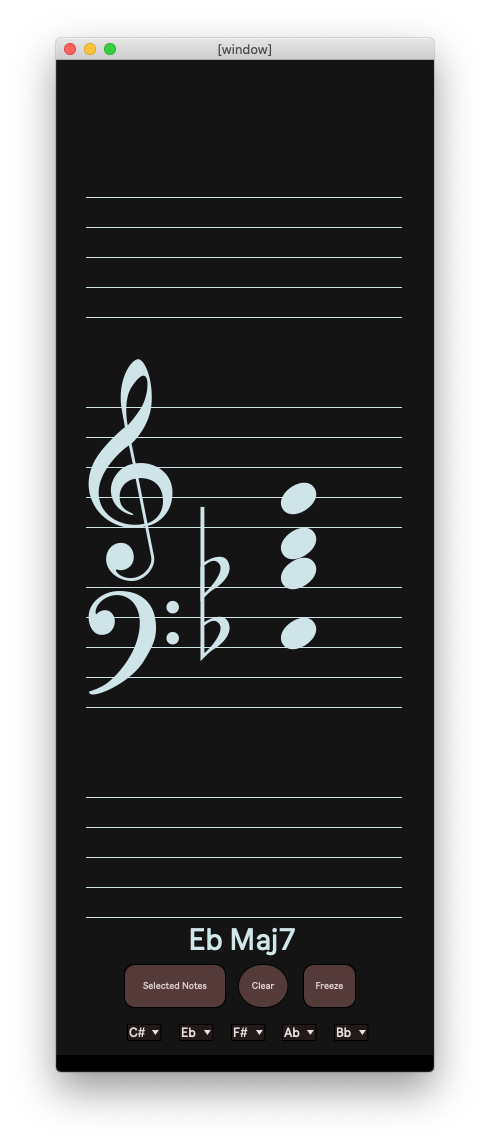 | Description: | Float window for displaying notes on a huge staff. Useful features such as : * Chord name display * Display the current clip’s selected notes * Clear display * Freeze display * Toggle between sharp and flat notes for each black key * Takes into account notes held with sustain pedal |