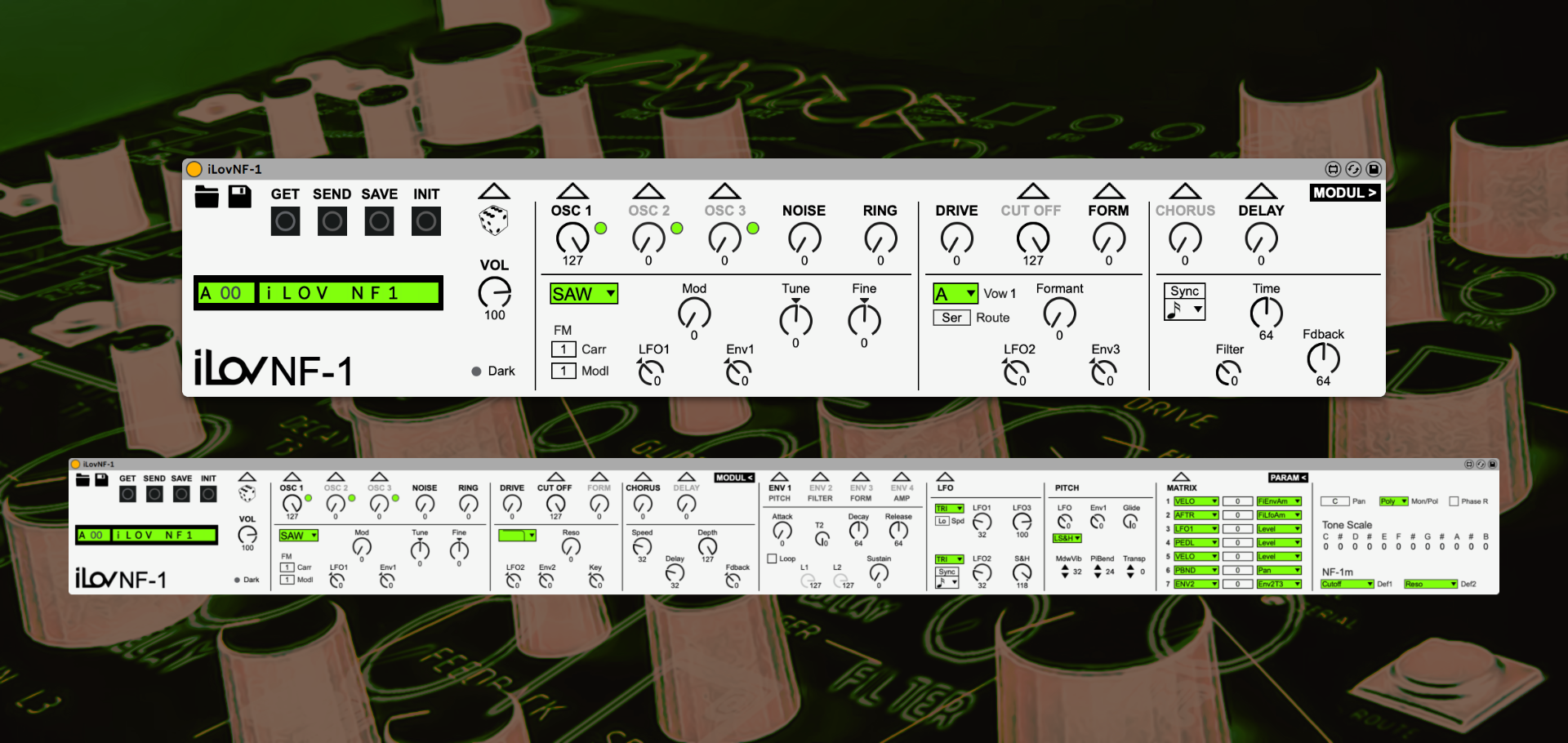 | Description: | iLovNF-1 is a Max For Live editor designed to easily control your Modor NF-1 or NF-1m synthesizer from Ableton Live. Creating, editing, and saving your sounds become child's play. The device keeps intact the philosophy of the Modor synth and its creative flow, but also adds creative tools to stay inspired. Like on the Modor NF-1(m), iLovNF-1 is divided in different sections: Oscillators section, Filters section, Effects section and Modulation section which contains envelopes, LFO's and a modulation matrix. The parameters of each one of these sections can be randomized to modify the patche or create a new one. The device has been clearly designed for you to stay focus on what you are doing. Changelog: Arrow buttons added to browse NF-1(m) patches. More confortable view of the midi automation envelopes in session clips and arrangement tracks. Fixed NF-1(m) checksum error for PC Win users when sending data. Delay time and LFO2 parameters now stable. Pitch LFO, Env1 and Glide added in the Push controls. Little bug fix and improvements. The user manual has been updated too: http://ilovmachines.com/iLovNF-1Manual.pdf Please note that you need OS014 or higher installed on the NF-1, or, OS007 or higher installed on the NF-1m, to use this new iLov NF-1version. (http://www.modormusic.com/downloads.html) http://ilovmachines.com |