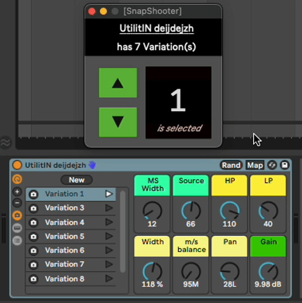 | Description: | This a free LITE version of SnapShooter. While limited, it still offers you a better way to navigate Variations using custom key/midi shortcuts and/or Push1/2 compare to Live's native implementation: instead of mapping every single Rack's Variations controls, you map SnapShooter once and it then becomes you "Variations control hub" by controlling the currently selected Rack. Simple as that. SnapShooter LITE's limitations are: no Variations control other than selecting the next/previous Variation no auto-trigger option: auto-trigger is always on Push control is limited to Device button and up/down arrow. No feedback on the screen either no built-in midi mapping no automatic floating window opening option. The window can only be open by clicking (or key/midi mapping) the flower button. |