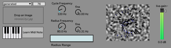 Creates a wavetable from either a generated image or imported image then scrubs that wavetable in a defined polar pattern. Patterns can be mapped to a midi keyboard and recalled |