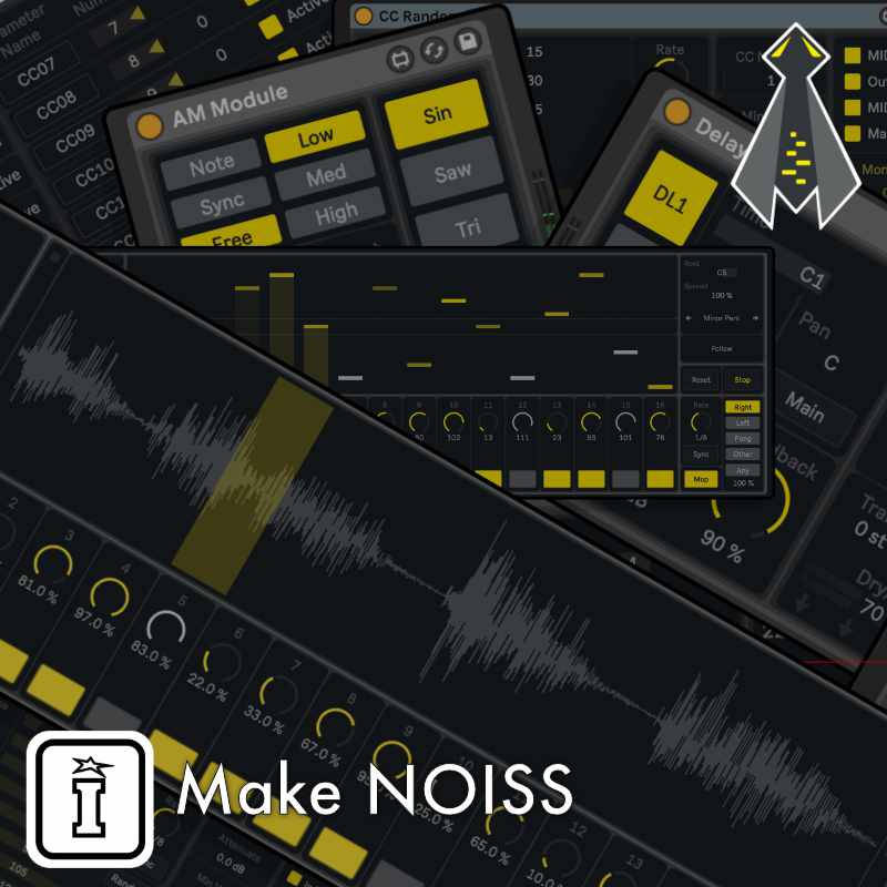 | Description: | The Make NOISS Bundle is a collection of all of NOISS COKO's MaxforLive devices released to date on IsotonikStudios.com. We've bundled them all together and taken 25% off the price of buying each pack individually! REPEAT PRO Repeat Pro is a Max for Live MIDI effect, designed to easily program rhythmic and melodic patterns step by step, then played by synthesizers, samplers and other instruments, both inside and outside Live. The follow up to the hugely successful Repeat device, Repeat PRO has been rebuilt from the ground up with a swathe of new features. The whole device is exclusively driven by a sixteen step sequencer, which among other parameters allows to set a different note, velocity, length, octave, control and delay amount for every single step. Part of Repeat Pro’s magic resides on the uncertainty factor that surrounds its behavior and defines the state of its most important parameters. Main features and functions Sixteen step MIDI sequencer. Note, Velocity, Length, Octave, Control and Delay values for each step. Complete Push integration (only for Push 2). Store and recall up to 64 presets. Control Change messages for external instrument modulation. Program Change messages for external instrument preset control. Map function for Ableton Live parameter modulation. Mute and Skip buttons. Random function applied over all the individual step parameters. Random window allows to constantly randomise most importan parameters. Five sequence Playback modes: Right, Left, Pong, Other and Any. Three Rate modes: Sync, Free and Track. SEMPLER PRO Sempler PRO is a polyphonic sample playback instrument, designed to create complex patterns by performing simple actions. The whole device is exclusively driven by its integrated sequencer, which among other parameters allows to set a different starting point, size, pitch, level and delay amount for every single step. Each configuration will then produce a continuous stream of fragments, played one after the other to generate a unique arrangement that results from the combination of these little pieces and bits of audio. Part of Sempler’s magic resides on the uncertainty factor that surrounds its behavior and defines the state of its most important parameters. These random functions make it very easy to produce a whole blast of ideas with only the need of a few simple operations. An extra set of parameters reflect other global aspects of the instrument and help to shape each pattern even further. These control the sequence length, speed and direction, the envelopes that affect every fragment and voice amplitude, and a group of functions dedicated to the Frequency Modulation, Echo and Filter sections. MAIN FEATURES AND FUNCTIONS Sixteen step sequencer. Fragment starting Point, Size, Pitch, Level and Delay values for each step. Mute and Skip buttons. Random function applied over all the individual step parameters. Five sequence Playback modes: Right, Left, Pong, Other and Any. Three Rate modes: Sync, Free and Track. Chance parameter randomly avoids steps from being played. Reset sequence button. Polyphony (one voice for each step). Window with Peak and Curve parameters. Fragments played back in a loop or as one-shot. Complete Push integration (only for Push 2). Store and recall up to sixty-four presets. Crop function for sample editing. Amp ADSR Envelope. Two unit styles for the sample Frequency Modulation: Note and Hertz. Three unit styles for the Echo effect: Note, Sync and Time. Lowpass and Highpass filter. Random pan. CONTROL PACK The Control Pack is a collection of three MaxforLive Devices designed by NOISS COKO, developer of the best selling Modulation Pack. Consisting of three MaxforLive Devices, CC Manager, CC Random and Random (The Audio Device Version of CC Random) this pack is designed to bring new level of control and randomisation over External Instruments and Ableton Live Parameters. CC MANAGER CC Manager is a helpful MIDI effect, capable of sending up to eighteen MIDI Control Change messages, mainly used as modulation source for external devices such as synthesizers, drum machines, samplers, and any other instrument that enables remote control through Control Change, Program Change or Pitch Bend messages. Equally useful for both live and studio performance, this device offers an alternative interface for situations where multiple parameters from one or more instruments require simultaneous modulation; when these changes must be extremely precise; or if they are just too complex to be played by hand. For all these scenarios CC Manager presents a different solution, allowing the automation of each parameter using clips inside Live. Besides the main uses described above, CC Manager works also as a bridge between Live and other programs, since MIDI Control Change messages could be sent outside Live in order to control another audio or video software. An essential part of the Control Pack! CC RANDOM CC Random is a simple but versatile MIDI effect that offers a new and different approach to randomness. It generates patterns from a limited group of values, used to produce real time modulations over external devices or any parameter inside Live. From a maximum of eight possible values to choose from, CC Random creates aleatory combinations depending on a set of parameters that add more or less variations to the sequence. Do you know what a MIDI Control Change message is? This specific type of message is used by CC Random to remotely control parameters from other instruments and effects. Most of the time this is referred to external devices, but in some cases it could be applied over parameters from instruments inside Live. For every case it’s recommended to read the user manual from the specific device you are trying to control, in order to know what Control Change number is assigned to each single parameter. RANDOM The final device in the Control Pack is Random (the audio effect version of CC Random), a simple but versa
