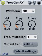 | Description: | This effect is based after my Tonegen device; a relative simple tone generator I use(d) heavily with my synthesis studies. After a year of Reason I started wondering why I couldn't use my Tonegen to modulate incoming sound. v1.1: Added 2 more waveforms and fixed a bug which would make it clash with Tonegen. The first versions were a copy of Tonegen which I used as a base. Starting from v1.1 I've now "branched" the patch and both will now be developed independently. A big change in ToneGenFX is the removal of the "menubar protection" (attempt to force people to read the changelog) as well as adapting the changelog to fit ToneGenFX. |