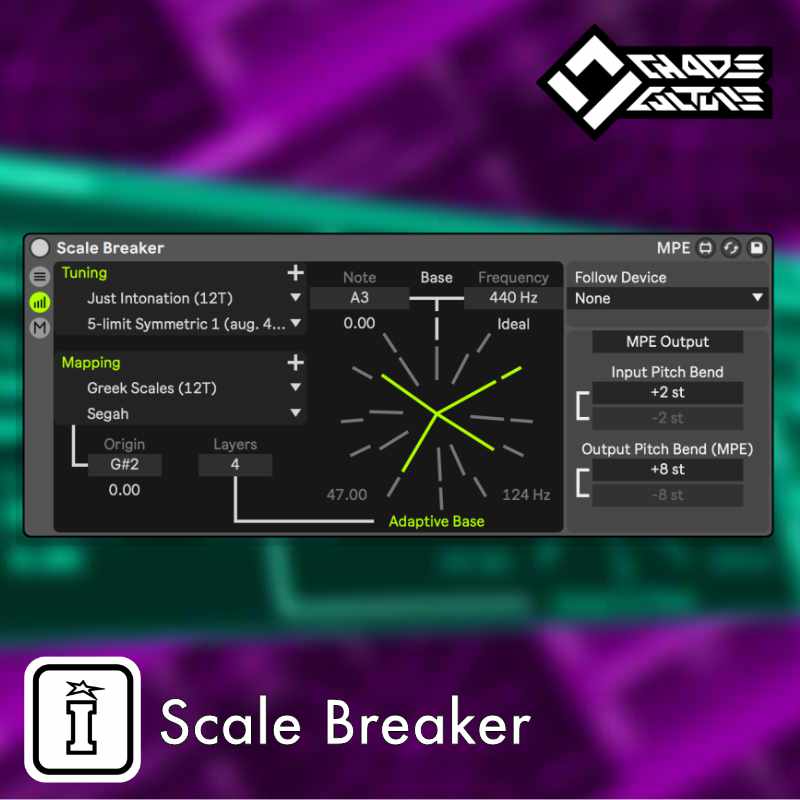 | Description: | Welcome to the Scale Breaker Max for Live device for retuning MIDI controlled instruments in Ableton Live 10 and 11. Live, as well as most VST Instruments and DAWs, is tied to the standard 12-Tone Equal that is almost exclusively used in today's music. This device modifies the Pitch Bend data of MIDI signals to break out of this limitation, forcing the instruments to play in tunings that otherwise would be impossible. Scale Breaker is packed with a lot of small functionalities in order to make it the ultimate retuning device. Pitch Bend data is not only being offset by a static value once a new note is played, it is also translated continuously. Pitch envelopes of Live's MPE MIDI Editor or the input of MPE MIDI Controllers are converted entirely. Automations related to the tuning are latency compensated and will update all currently held notes. Additionally to the Tunings, this device supports custom Keyboard Mappings. It can import and export .scl and .kbm files, and a built-in editor can be used to make customizations in real time. An Adaptive Base allows Just Intonation tunings to be used properly in any key, regardless of the played chords and their root notes. Such a system is necessary and the reason why 12-TET became the standard, as it doesn't require retuning the instruments for almost every chord that is being played. However, retuning gets easier with Scale Breaker since the Adaptive Base is controlled with low velocity notes, making it possible to specify the Base Tunings within Live's MIDI Editor or through other means of generating MIDI notes - such as MIDI Keyboards and other plugins. There is no need to use additional controls in a separate window The Follow system can be used to link together the Tunings and Mappings of some or all instruments in a song. This includes the Adaptive Base, as well as automations of the Base Tuning. All of this data is communicated across the devices in real time with latency compensation for most accurate timings. It also helps to write music in Just Intonation, as every instrument is guaranteed to be in tune with each other for every played chord. Tuning & Mapping Slots can be used to load multiple Tunings and Mappings into the device. Control which one should be used with automation or with MPE Note Expressions on a per note basis. Finally, the Freeze functionality can be used to create smooth transitions. Switch between different Tunings for each individual note or for the whole Adaptive Base system directly from Live's MIDI Editor. From basic and Microtonal scales with any amount of notes or formal octave intervals to and complete experimental setups. This device aims to provide everything you need to control any MIDI-controlled instrument, such as stock Live devices, VST Instruments or hardware instruments, whether they support MPE or not, and still keep them polyphonic. |