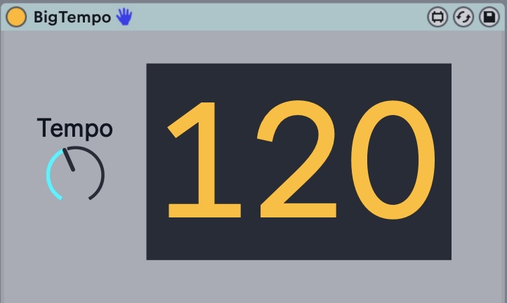 | Description: | Big Tempo is a utility device that I drop onto each of the tracks of my live performance setup. It shows the current Live BPM in large visible letters. It has one encoder knob that changes the BPM from 40 to 230 BPM in increments of 5. I usually map that encoder to a knob or fader on my keyboard. |