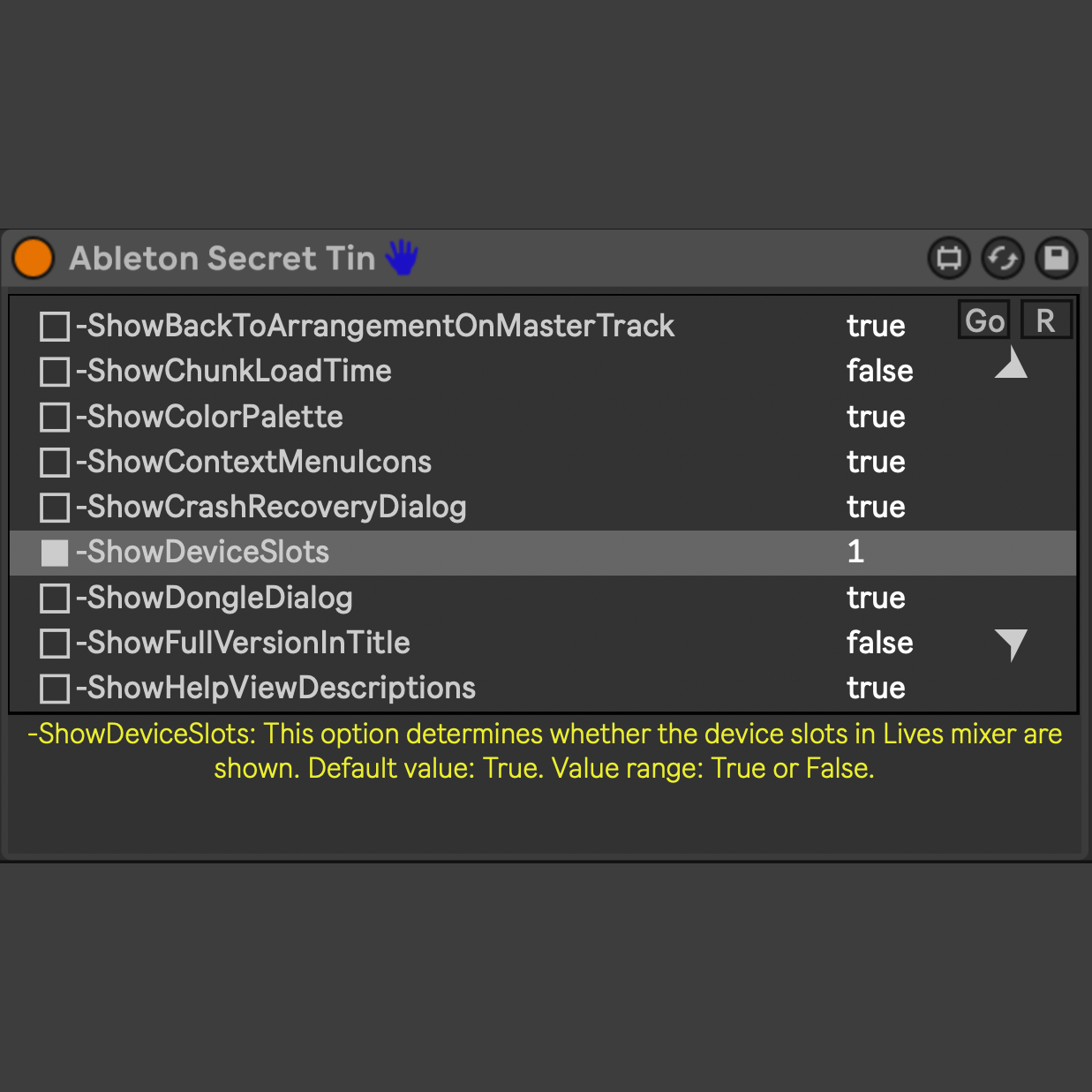| Description: | ABLETON SECRET TIN is a M4l that manages the Options.txt file. It can enable a few experimental and unsupported features in Live. Note that available options may change or be removed in future updates without warning. This Device works on any Ableton Live 11 and on Early stages of Ableton 12. FELL FREE to try it out and let me know which option works and which not. So we can make more details about it. Cautions: The R, resets all the Options; to activate them there is the toggle(square on the left of each option of the list) The Go writes the options file. USE YOUR REAL E-MAIL TO RECEIVE MY FREE DEVICES AND UPCOMING GAME CHANGERS(fake emails have no service and no-sense). I won't give technical support, it is just an experiment from my end to write a JS code(old style) that is helpful for who likes to learn Js language in Max MSP. If you are a Turbo Coder get in touch, I am looking for a peer to work in team for future projects!!! |