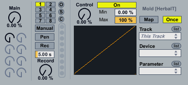 Preset curves can be drawn manually, recorded over a specified time with the record knob, or automatically draw a linear line based on a set of parameters.