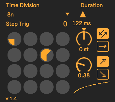 | Description: | My new patcher in homage to Chris Franke from Tangerine Dream! Use with midi clip or other midi generator like my last creation "Echelle" - With menu you can choose Time division - On Matrix dial step division from 1 (no effect!) to 8 (number on right) very simple for a little nostalgia! Have Fun! Maj > - Add pitch and velocity deviation - Fix parameter_enable - add Step view from 1.2 - improve sync from 1.2 - Fix some transport and sync problems from version 1.1 - Fix hang bug from version 1.0 |