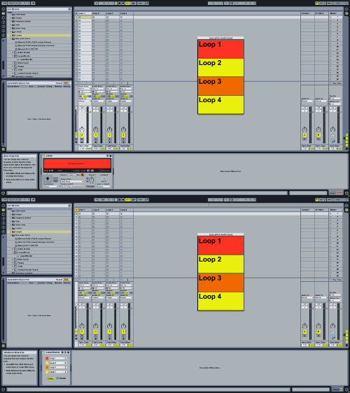 | Description: | This device lets you monitor the states of up to 4 Looper devices in a live set in a separate floating, freely positionable window. It's possible to use multiple instances of the device to monitor additional Looper devices. This is my first max4live device. Any feedback on how to make this a better device is appreciated! |