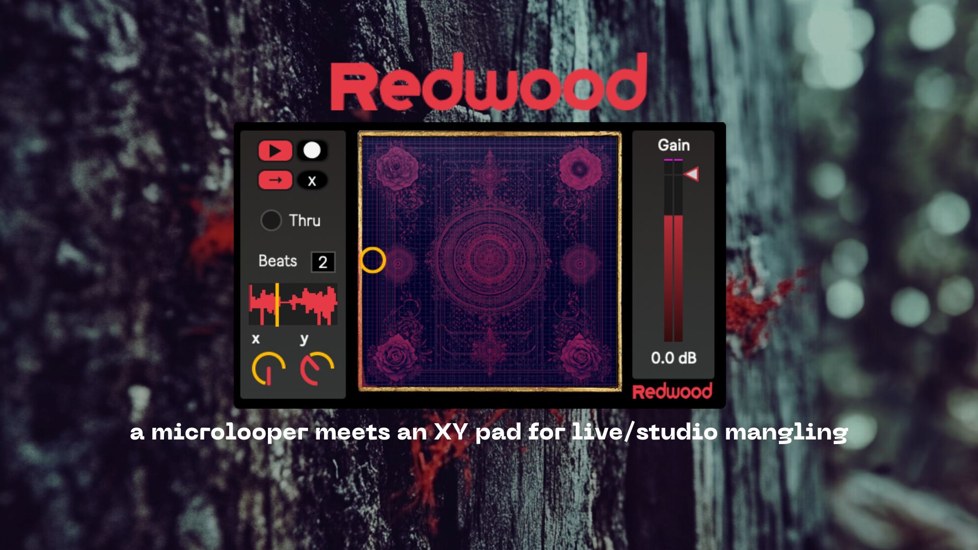 Description: Redwood is a micro-looper attached to an XY pad which adjusts the loop's pitch and length in musical ratios. Redwood was inspired by Radiohead performances in the early 2000s around the time that Kid A came out.  Essentially, Jonny Greenwood would sample little bits of Thom's vocals with a Korg Kaoss Pad and manipulate them in real time - stretch them, repitch them, just turn his vocals into an instrument of sorts.