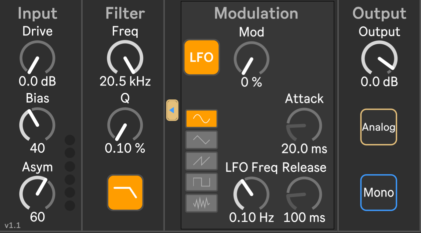 | Description: | As the name suggests, this device aims to recreate the vibe of the legendary filter section of the Korg MS-20 synthesizer, using a state-variable filter and analog saturation emulation. It also comes with a couple of extras like LFO/Env modulation and mono summing. Of course, this project is still under construction, so if you have any suggestions or find any bugs, please let me know. I’d really appreciate it! Cheers :) |