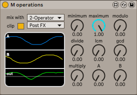 | Description: | Performs basic math operations between both channels of the audio signal and both channels of another given input signal. video demo : https://www.youtube.com/watch?v=FmXUFo5pEVE |