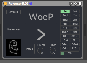 | Description: | A beat repeat which reverses the slice. Feedback is always welcomed, it takes a while, but hopefully it delivers some results. good glitchin everyone! little update, GUI now compatible with L10&11 Added "Keep" button: keeps the sampled loop even if effect is un"Wooped". To resample new material "keep" must be off. This is not a granular based device, so no warping, if you change tempo in Live and the effect is the pitch of the sample will change, as per a tape delay. |