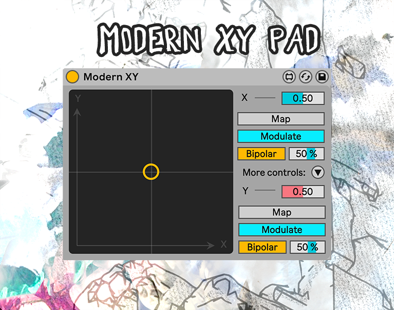 | Description: | A small and simple re-creation of the OG M4L device "XY Pad" from back in the days. Control two (or four) parameters with the X and Y values of a 2d cursor. Features and improvements: - Modernized look and feel - Current day (2025) style of mapping interface, featuring bipolar and unipolar modulation or remote parameter takeover. Based on code in the stock Expression Control device - Output curve controls, with a switch between one- or two segment ("S-shaped") Bézier curves - Two additional mapping outputs, with source selection (either X or Y axis), with a small graphical (LCD-style) dragable interface (pictslider!) - Snapback mode: in this mode, the cursor snaps back to the set coordinates when the mouse is released. Settable easing time (0 - 2000 ms) and curve - Inertia mode: logarithmic smoothing of the cursor (+ spawns a spooky ghost cursor to represent the smoothed signal), simulating inertia. With smoothing time parameter - Global depth control Reuses some code from the stock Expression control device. Licensing is subject to future change; in general, please don't sell this device or any derivative of it. Release 0.1.1 is a pre-release version. There are bugs! ** Please use the GitHub link for download (see comments)!! ** Release 0.1.1: https://github.com/zchrome/modern_xy/releases/tag/0.1.1 |