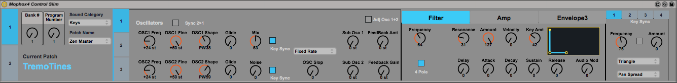 There is one issue that I've noticed: if you have more than one instance of the Mophox4 Control Slim instantiated in Live - for example, to control more than one Mopho x4 or a Mopho x4 and the patch selection on a REV-2 - there is an issue where any changes made to one max device immediately affect the second one. Even when the Max devices are on different midi channels or if I set each external synth to a specific midi channel, the problem still happens.