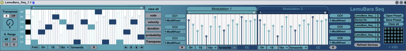 Description: LemuBara is a Step Sequencer inspired on Ultimate Step Sequencer (USS) Created by Len Sasso.