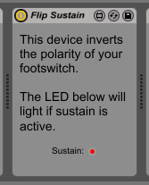 | Description: | This device inverts the polarity of incoming sustain pedal messages. It is designed for use with pedals whose polarity cannot otherwise be switched, such as certain footswitches from Yamaha. Note that these footswitches are *not* common. In most cases, pedal polarity can be reversed via a switch on the pedal or by depressing it while plugging it in. To use, simply insert an instance on the MIDI track which will be receiving sustain pedal messages. Known issues: This device works per track, meaning that it is necessary to add one to every MIDI track in your Live Set. A better solution would be a single device inserted anywhere which could process sustain pedal messages for all relevant tracks. This is probably possible via the Live API. |