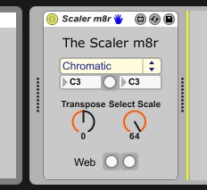 | Description: | Scaler m8r is a MIDI utility for max4live, transposing incoming notes in realtime. Drop it on a midi track, and incoming MIDI data is adapted to the selected scale. Included Scales are: Octaves, 1; Fifths, 1 5; PentAmbig, 1 2 5; Fourths, 1 4 b7; cbm_q1, 1 3 4 6; cbm_q2, 1 b3 4 b6; Tristan, 1 b3 b5 b7; cbm_p1, 1 2 4 5 7; PentaMaj, 1 2 3 5 6; PentaMin, 1 2 b3 5 b6; Slendro, 1 2 4 5 b7; Pelog, 1 b2 b3 5 b6; Miyako-bushi, 1 b2 3 5 b6; Blues, 1 b3 4 b5 5 b7; SixtoneSym, 1 b2 3 4 b6 6; Petrushka, 1 b2 3 b5 5 b7; Prometheus, 1 2 3 b5 6 b7; Japanese, 1 b2 4 5 b6 b7; Wholetone, 1 2 3 b5 b6 b7; Augmented, 1 b3 3 b5 b6 7; AugmentedMaj, 1 b3 3 4 5 b6 7; Major, 1 2 3 4 5 6 7; Minor, 1 2 b3 4 5 6 7; BebopMaj, 1 2 3 4 5 b6 6; BebopMin, 1 b3 3 4 5 6 b7; BebopMelMin, 1 2 b3 4 5 b6 6; HarmonicMaj, 1 2 3 4 5 b6 7; HarmonicMin, 1 2 b3 4 5 b6 7; NeopolitanMaj, 1 b2 b3 4 5 6 7; NeopolitanMin, 1 b2 b3 4 5 b6 7; Dorian, 1 2 b3 4 5 6 b7; Phrygian, 1 b2 b3 4 5 b6 b7; Lydian, 1 2 3 b5 5 6 7; Aeolian, 1 2 b3 4 5 b6 b7; Mixolydian, 1 2 3 4 5 6 b7; Locrian, 1 b2 b3 4 b5 b6 b7; Algerian, 1 2 b3 4 b5 5 b6 7; Enigmatic, 1 b2 3 b5 b6 b7 7; Arabic, 1 b2 3 4 5 b6 7; Todi, 1 b2 b3 b5 5 b6 7; Purvi, 1 b2 3 b5 5 b6 7; OvertoneDom, 1 2 3 b5 5 6 b7; Hindu, 1 2 3 4 5 b6 b7; Altered, 1 b2 b3 3 b5 b6 b7; PhrygianDom, 1 b2 3 4 5 b6 b7; Octatonic, 1 b2 b3 3 b5 5 6 b7; Lydian_Minor, 1 2 3 b5 5 b6 b7; Rag_Madhukant, 1 2 b3 b5 5 6 b7; Rag_Madhuvanti, 1 2 b3 b5 5 6 7; Rag_Ahir_Bhairav, 1 b2 3 4 5 6 b7; Rag_Arnand_Bhairav, 1 b2 3 4 5 6 7; BebopDom, 1 2 3 4 5 b7 7; Saranga, 1 2 b3 b5 5 b7 7; Sambah, 1 2 b3 3 5 b6 b7; HungarianMaj, 1 b3 3 b5 5 6 b7; InstantJazz, 1 b2 b3 b5 5 6 7; Jeth, 1 2 b3 4 b5 6 7; MixoBlues, 1 b3 3 4 b5 5 b7; HungarianMin, 1 2 b3 b5 5 b6 7; Diminished, 1 2 b3 4 b5 b6 6 7; Bhairav_That, 1 b2 2 4 5 b6 7; SpanishEightTone, 1 b2 b3 3 4 b5 b6 b7; Ninetone, 1 2 b3 3 b5 5 b6 6 7; Chromatic, 1 b2 2 b3 3 4 b5 5 b6 6 b7 7; Kudos to Chris Muir for his original Max Patch which you can find here: http://www.xfade.com/max/ScaleMaster/ Go create some music! modul8tor |
