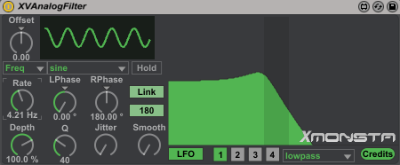 | Description: | XVAnalogueFilter, a Free Analogue (Modelled) Filter device for Live 9 (Requires Live 9/Max 6) XVAnalogueFilter, contains a selection of Virtual Analogue Filters, SVF (Zero delay feedback/Linear Trapezoid), Ladder (Moog), Diode Ladder (TB303, or EMS VCS 3) and Transistor Filters created using Gen DSP algorithms (Gen requires Live 9/Max6 in order to work). There are High Pass, Low Pass, Band Pass, Peak and Notch filters. A detailed explanation of each filter in the filter menu can be found in the "Credits" section of the device, along with the licenses and credits for each filter algorithm. XVAnalogueFilter, is broadly based on Live's own AutoFilter interface, so those familiar with this should feel right at home. There is an LFO section (which includes manual operation), along with an Envelope section (allowing the filter envelope to be triggered by the incoming audio signal). It's possible to adjust the phase of the left and right channels (if you want 0% phase, just set the LPhase (left phase) to 180%, although the filter sounds fatter if you offset them by just a few %). You can also link the phases together and put them 180% phase offset from each other, in order to get tight timing of the LFO to sync with your track. The device really comes alive when automating the rate of the LFO (try drawing in some automation on the Rate/Sync/NoTrpl/Trpl dials, in 4ths, 8ths or 16ths), while also automating the offset and depth dials. Also the smooth dial can be used to smooth out any fast filter transitions. I spend a large amount of time testing my devices, so (unlike many maxforlive devices), this device should save properly with your set and you shouldn't experience bugs or errors. All possible dials/parameters are named properly and should be automatable through both session view and clip envelopes. If you do have any problems, feel free to contact me here, or on the forums of http://www.xmonsta.com/forum/home/ and I'll be happy to help. I've had a huge amount of fun playing around with these warm sounding, squelchy filters for the last few weeks. Hope you enjoy using them as much as I do. Cheers Xmonsta |