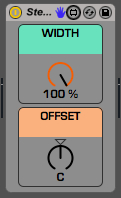 For example: if a normal stereo signal consists of the left channel panned 50L (full left) and the right channel panned 50R (full right), reducing the width to 50% will result in the left channel being panned 25L and the right channel being panned 25R. You could then use the offset to move the image entirely to the right side of the stereo field. Increasing the offset to 50R will effectively place the entire image between C and 50R.