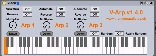 | Description: | *Update 1.4.0* You get more reps on the arp, now continues till note off. Up/Down for each arp plus random and really random buttons which automate the change of the up/down *Update 1.4.0 Velocity controlled arpeggiator. The harder the note the quicker the tempo synced arp. Note you need the previous arp to be active for the next one to come into effect, also live must be playing so it can sync. Make a synth line and then twiddle some knobs. My 1st device so alteration suggestions welcome. |