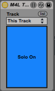 | Description: | Simple device that gives you a button to turn track solo on/off which can also be automated (to get around Live not natively letting you automate the solo). |