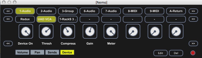 | Description: | Nemo assists workflow for MacBookPro users select track or device : cursorover change parameters : two fingers scroll I made on MBP 15" (late 2008) I don't know it works on your MBP set a file path for the parameters map in the patch editor --ver.1.2 now automatable --ver1.3 added mute,solo,arm for selected track (mappable) --ver.1.4 added select(scroll) and fire scene or clip (US key) left command key+scroll : slower left alt/option key+scroll : faster |