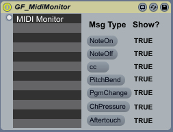Simple display of MIDI messages received on an Ableton LIVE channel.