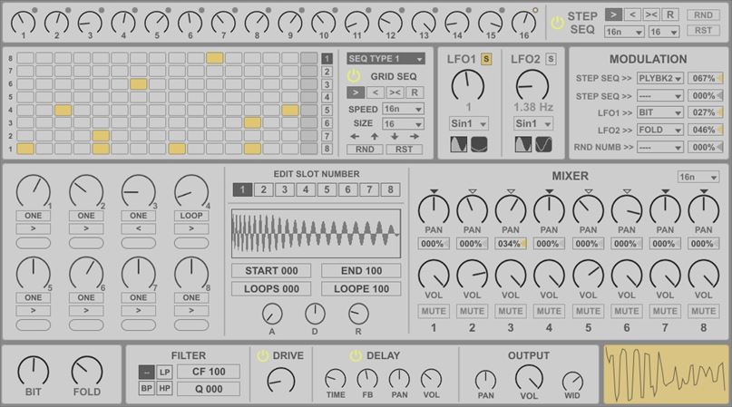 | Description: | Sampler Patch Update: v1.01 RndRst for GridSeq didn't work(fixed) Added delay send box to each slot. Added global swing (swing affects trigger seq 1/2, step seq) Added playback value disp on/off switch v1.02 now you can modulate filter cutoff and drive value |