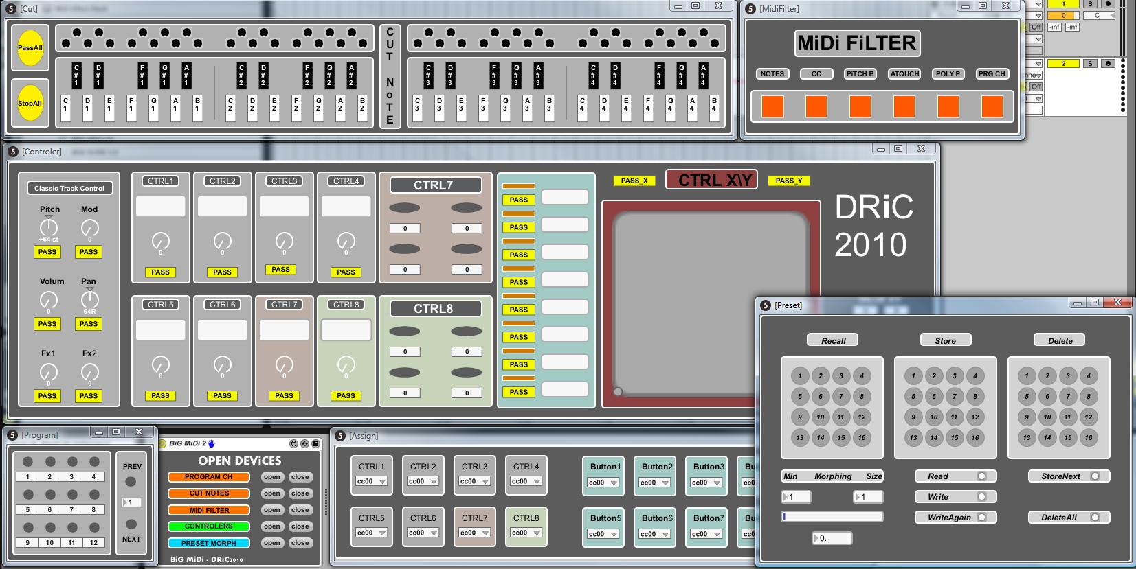 | Description: | It's My Four in One Patchs of Control Midi. 1 Classic Midi Filter 2 Control Midi with automation mute(double click "controlers" and double click "Assign") 3 Programme Change with preset. 4 Cut Note Filter For Drum Rack The labels of the buttons is not save with set. Save with preset. 1.7 BugFix Preset and other parameter recall with set |