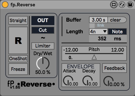 | Description: | Real time reverser with freeze mode. Actually, with the straight mode and feedback (or freeze), you can use it to repeat (and freeze) the sound like a stutterer. The name should be "fp.Repeat" with a reverse mode. :-) https://youtu.be/7mNNEyRP1EQ |