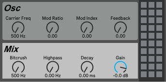 | Description: | Cymbiot is a device designed to generate cymbals. It utilizes phase modulation and deliberate aliasing ("bitcrushing", as it's often called) to create its sounds. This is a very different and more computationally efficient approach compared to the one commonly seen, which attempts to emulate classic drum machines such as the 808. In my personal opinion, it's also much more simple and flexible- changing a parameter even a little bit can drastically alter the resulting sound. I've included a preset feature as well. It can be automated in Ableton, giving the user the option to switch between up to 30 sounds during their song, while only having to automate a single parameter. |