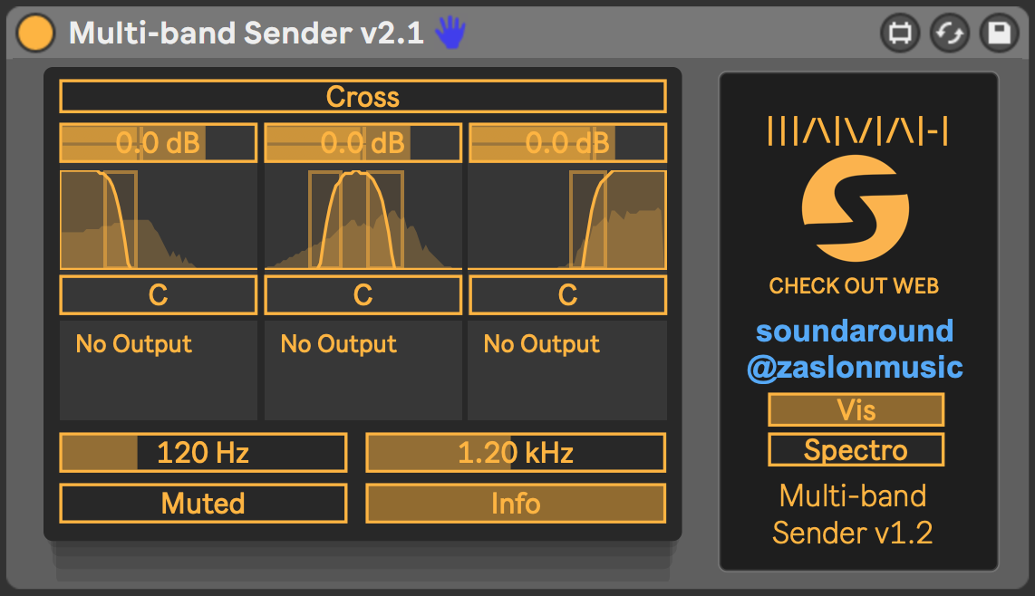 | Description: | MULTI-BAND SENDER A Max For Live multichannel signal routing device for Ableton Live 10. For unimaginable sound design and room/atmosphere building. Thank you all for your support and feedback! Special thanks to Lukas Satin, who pushed me to do M-BS linear. That was a cool challenge :) The main change is in the filter. So in version 1, for example, frequencies from left and right band fall into the middle band and vice-versa, which is cool for experiments but not always that we want. That's why the new filter was added in version 2 and now it's possible to switch between two modes, and in the new mode, bands will operate without passing extra frequencies. Please, don't forget rate the device. v2.1 Changelog: - Some patches are remodelled from scratch - Linear cross filters added - Signal visualization added - Some minor improvements in work FREE v1.0: http://www.maxforlive.com/library/device/5021/multiband-sender |
