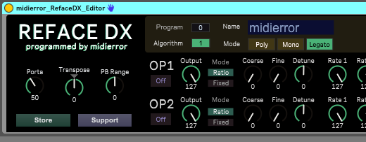 Description: A Max4Live editor for the Reface DX, which enables you to program every element of the synth and store automated changes. Every parameter is catered for and accessible from one panel - including some system settings.