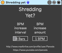 | Description: | This device was made to help practice music instruments with Ableton. That device will increase the BPM by an amount set by the user in an interval of bars that again is set by the user. All you have to do is simply loop the part of interest, find roughly the bpm of the part and hit space. |