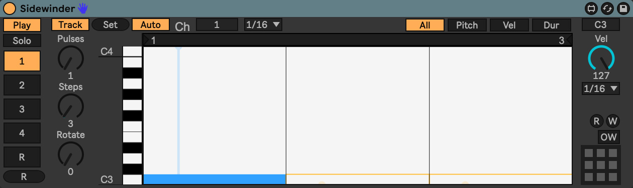 | Description: | Sidewinder is an Euclidean sequencer for creating polyrhythms. The full documentation is at the URL. |