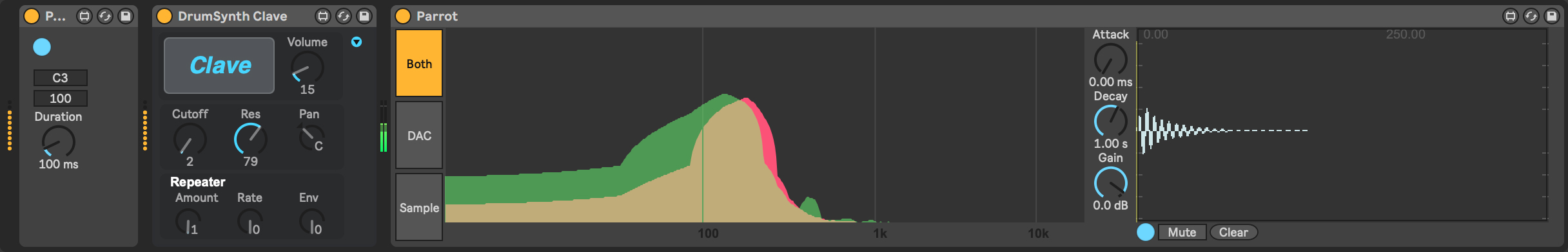 | Description: | Parrot is an analyzer designed to assist in recreating sampled sounds with a synthesizer. It overlays the spectral output of an instrument (for example, a synthesizer) and a sample. The idea is to then manually manipulate the synthesizer until the spectral output matches the sample. The full documentation is at the URL. The technique of using the spectral output of a sound to replicate it through synthesis is inspired by "Welsh's Synthesizer Cookbook". |