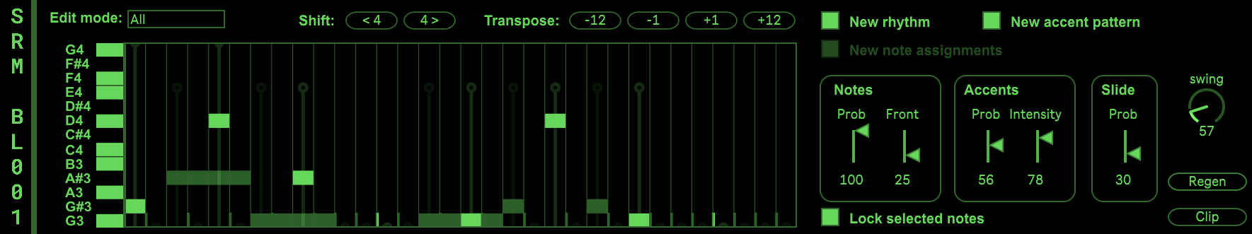 | Description: | Stochastic Rhythm Machines - BL-001 generates Tech House basslines. Visit the github page for full documentation: https://github.com/jpriebe/SRM-BL001 |