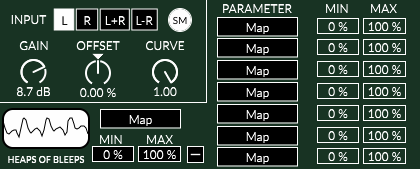 Choose which audio channel(s) get mapped to the automation. Then dial in the automation with the gain, offset and curve parameters.